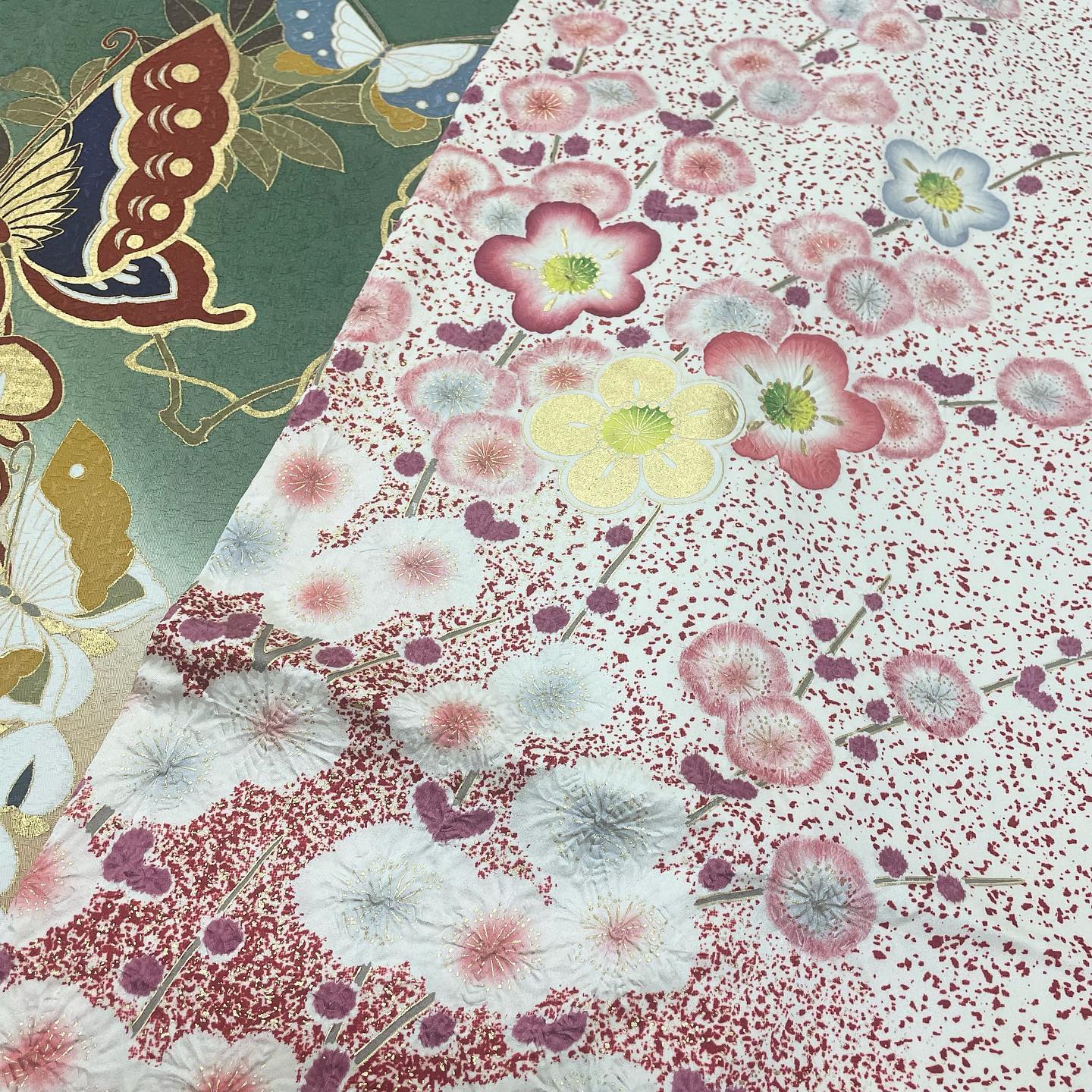 パッと明るいピンクから淡いピンク、スモーキーグレーへとグラデーションになりながらの色の変化も美しい色打掛です。